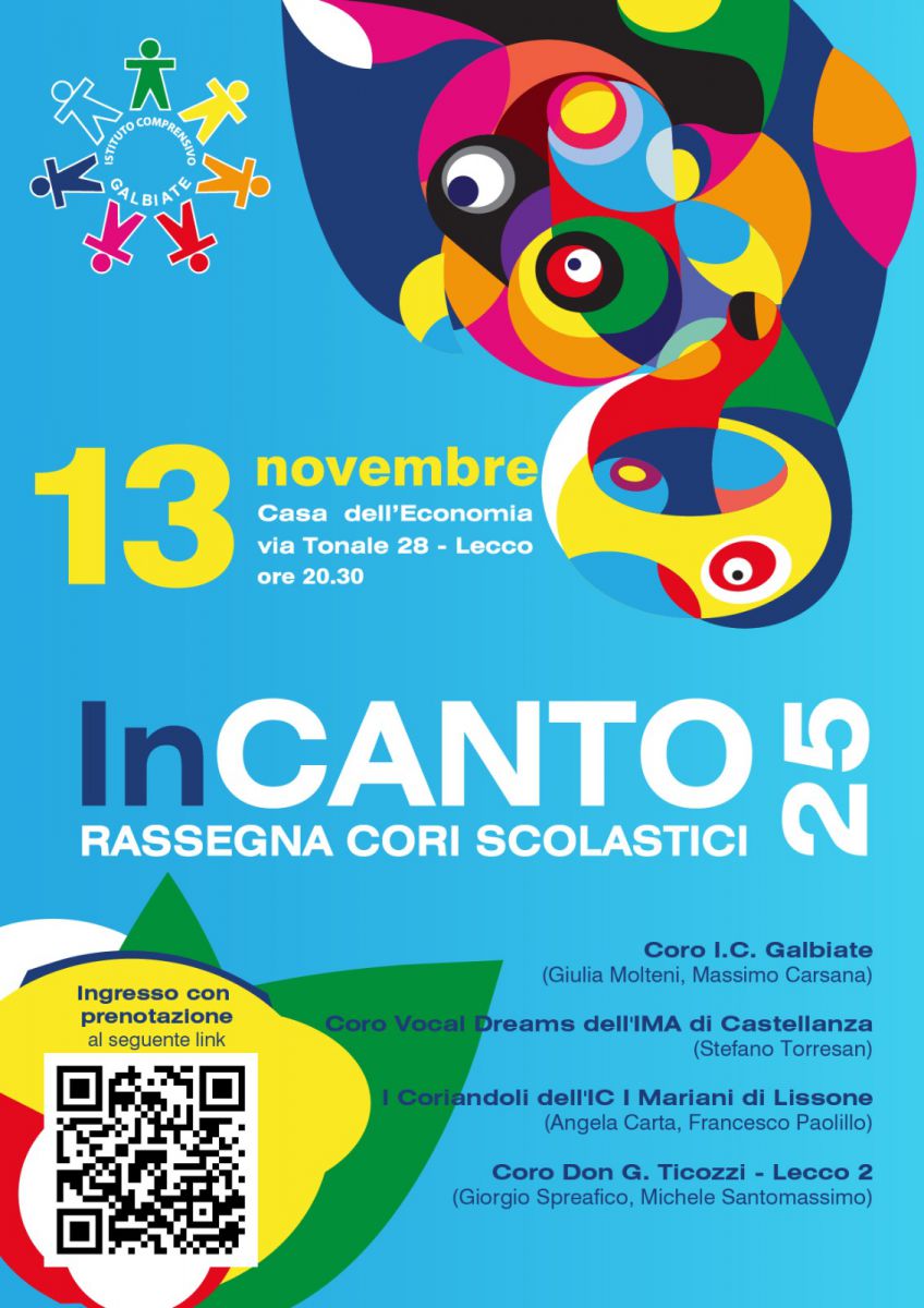 Siamo felici di invitarvi alla nuova edizione di InCANTO 2025, la rassegna dedicata ai cori scolastici, che si terrà mercoledì 13 novembre alle ore 20.30 presso la Casa dell’Economia di Lecco (via Tonale 28).